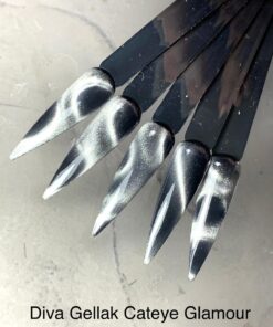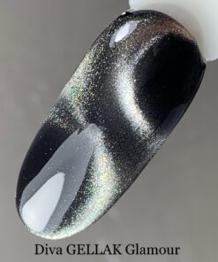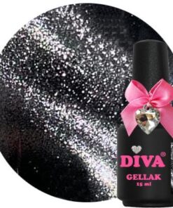 Gel Lak Cat Eye Glamour. Dit is een speciale Cateye zilver kleurig. Diva Gellak is van zeer hoogwaardige salon kwaliteit en gemakkelijk zelf aan te brengen. Door het self leaving systeem loopt de soak off polish mooi in elkaar over waardoor je prachtige nagels creërt. Diva Gellak blijft 14 dagen op de natuurlijke nagel zitten en bladdert niet af.